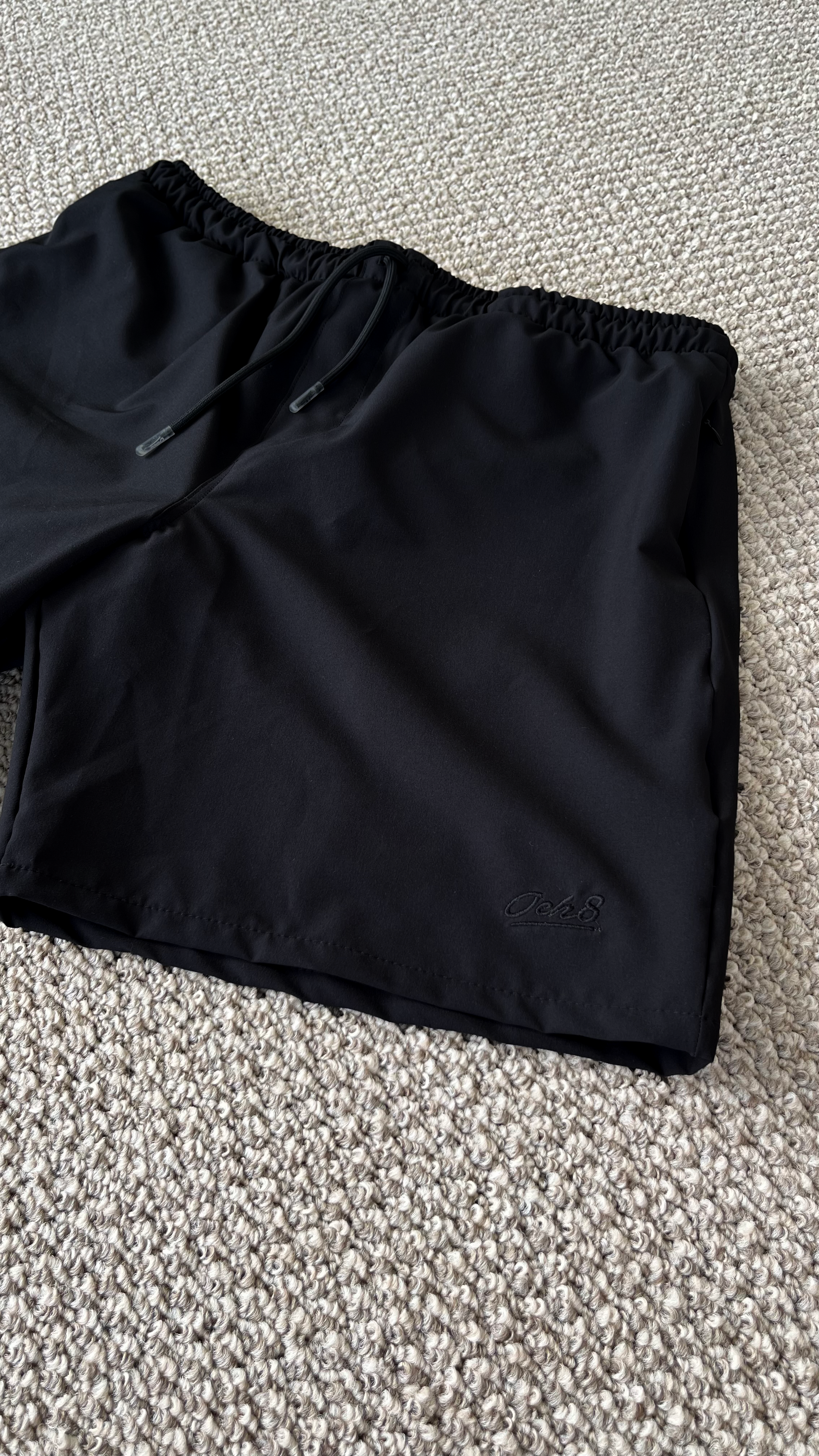 Nueva Pantaloneta “LOG8” en color negro y negro con costuras blancas